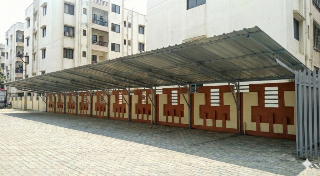 These sheds are suitable for residential societies, commercial complexes, offices, and industrial facilities. Proper layout planning ensures smooth vehicle movement and efficient space utilization.