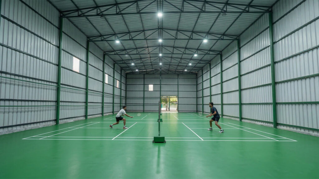 These sheds are ideal for badminton courts, play areas, indoor sports zones, and multipurpose halls. Proper height and clear-span layouts ensure unobstructed space for movement and organized activities.